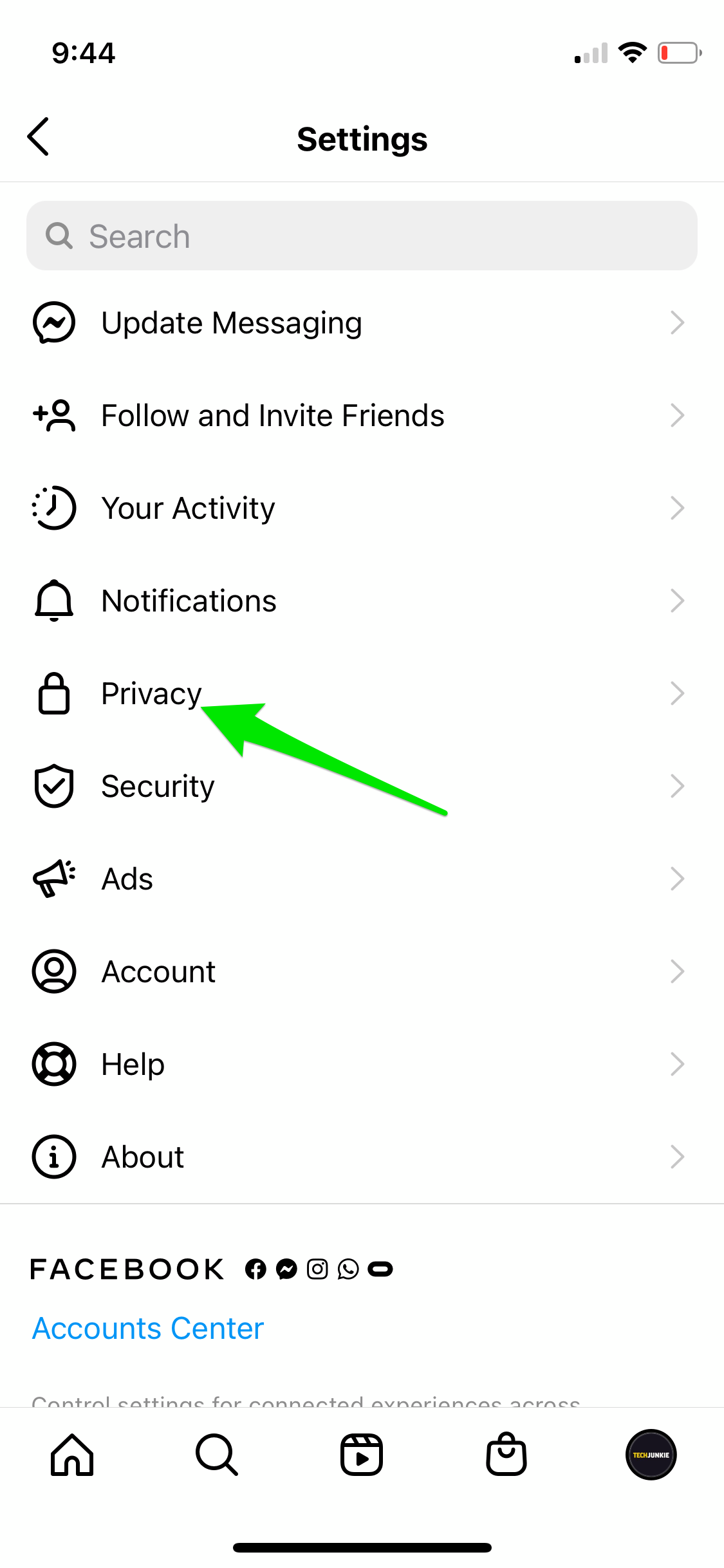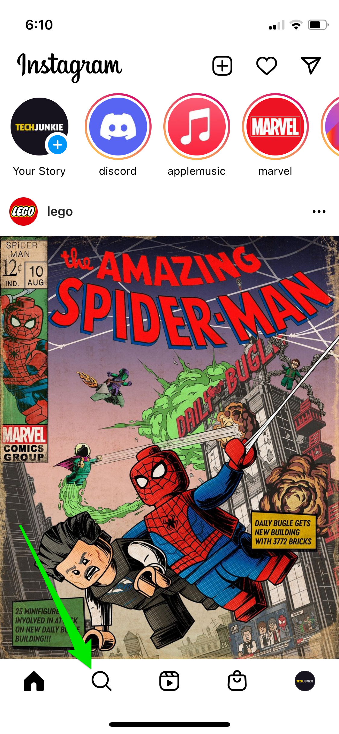 - Open the app and navigate to the offending user’s Instagram profile by tapping on the magnifying glass(search) icon.