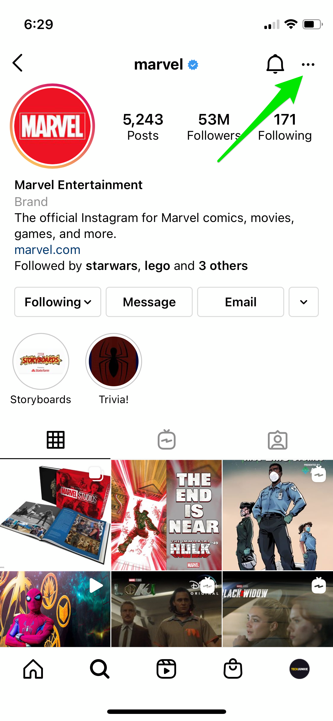 - Once you’ve selected the appropriate account, select the three-dot menu icon in the top right.