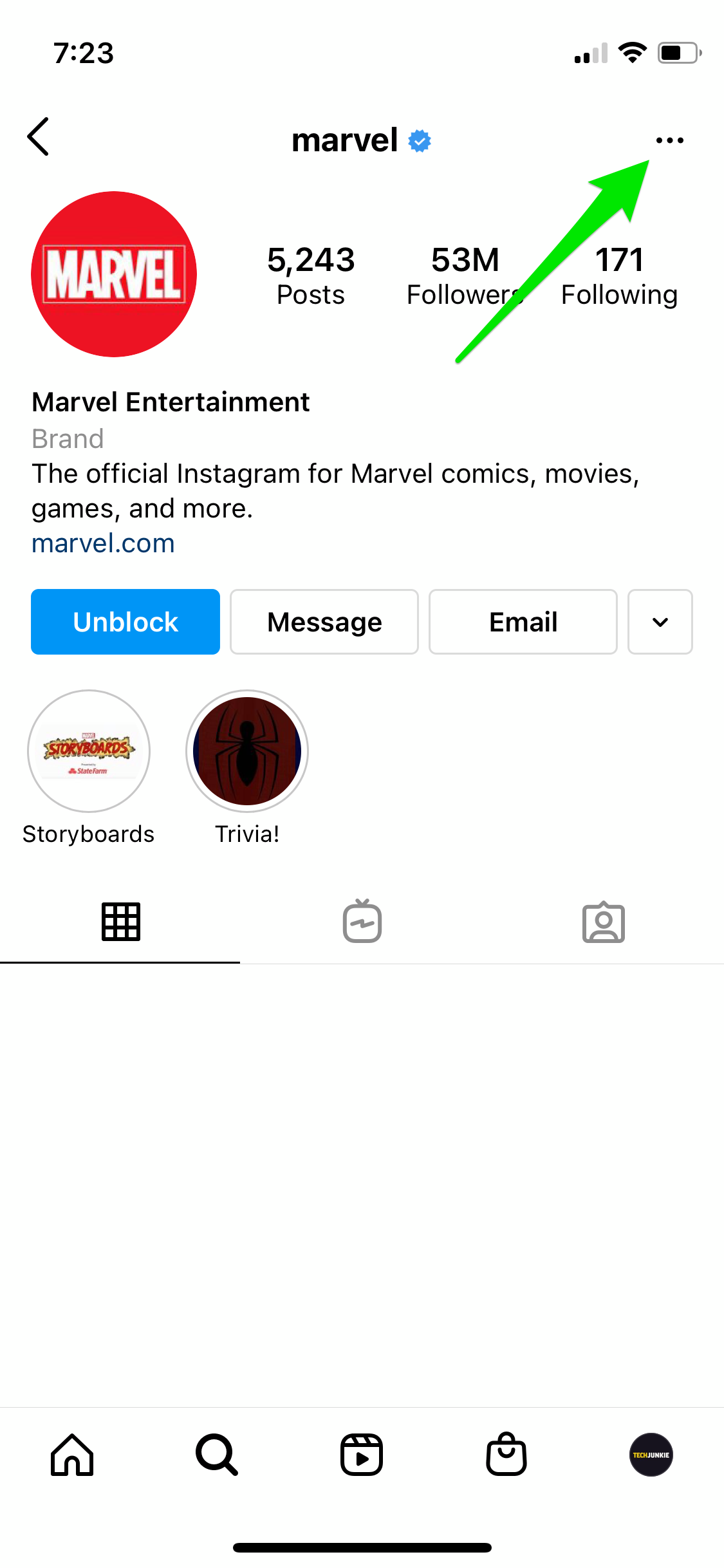 Another option is to find the list of all the accounts you have blocked from within your own profile.