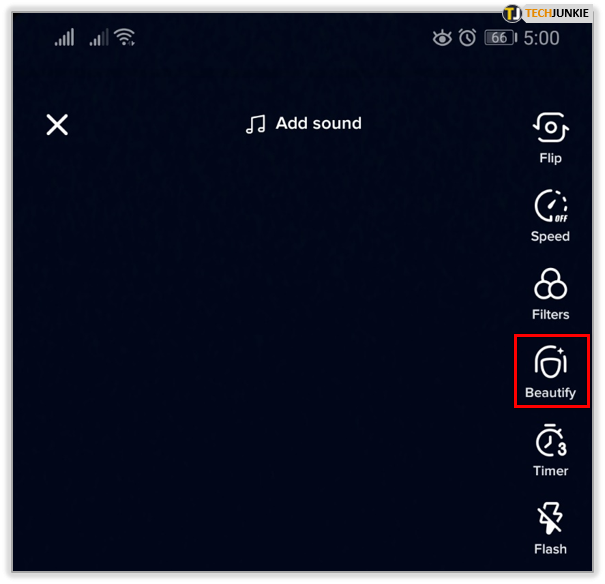 To access these effects, open your TikTok app and tap the plus icon at the bottom of the screen. Notice the icons on the edge of the screen to the right. Tap “Beautify.”
