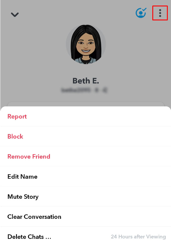 - Long-press that friend’s name and click the 3 dot icon on the upper right side.