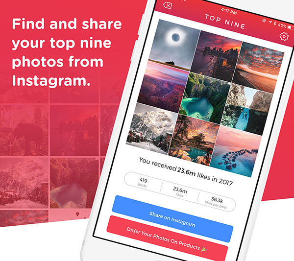 Top Nine for Instagram is a tool built for the popular social network that allows you to automatically create a photo montage featuring your nine most popular photos of the year. The app’s been around since 2015 and has exploded in popularity, becoming a popular end-of-year tradition for many Instagram users, regardless of follower count.