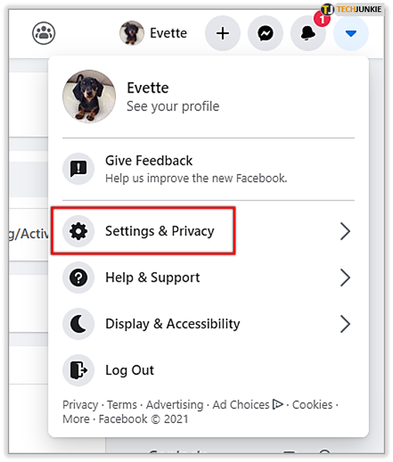 Open your Facebook account. Click on the Settings & Privacy option from the pull-down menu on the upper-right of the page.
