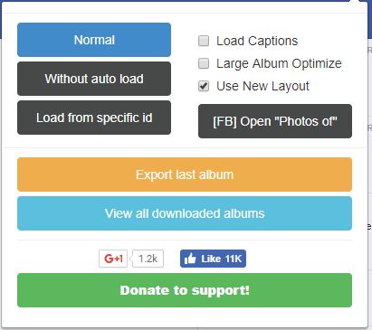 Once you’ve loaded up an album, click on the web extension in your toolbar. There are a bunch of options here, and truth be told, the app has a bit of a learning curve. Most users will just want to use the “Normal” export option, though if you want to grab your captions or select specific images, there are tools for that too. DownAlbum has a series of tutorials linked through their own Chrome Web Store entry, and if you’re at all curious about how those other options function, we highly recommend checking out those links. For now, we’ll be moving forward with the “Normal” option we mentioned a moment ago—it’s the easiest tool for most users to download their albums.