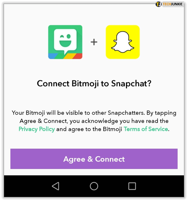 Once your Bitmoji is all set up and ready to go, you’ll see the Connect Bitmoji to Snapchat option at the very end. Tap on Agree and Connect, and your cartoon avatar will automatically be synced with your Snapchat account. To check if everything worked out fine, open Snapchat and look for the Bitmoji icon in the upper-left corner of the screen.