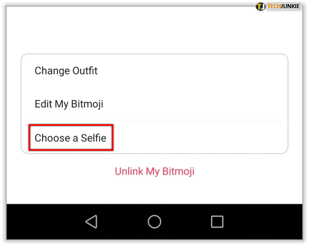 - Select Bitmoji settings. That will show you all options that you can use for your Bitmoji. Currently, there are three (Change Outfit, Edit My Bitmoji, Choose a Selfie).