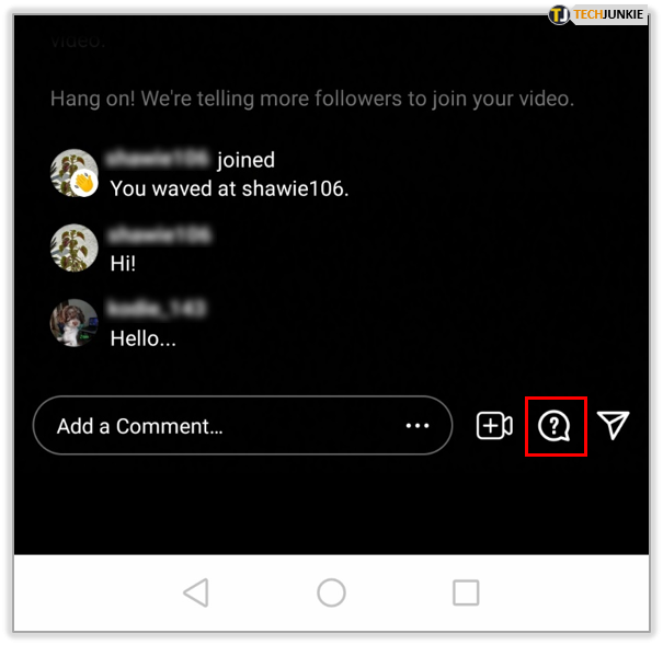 - The Question icon allows you to post a question sticker to your stream that any viewers can answer.