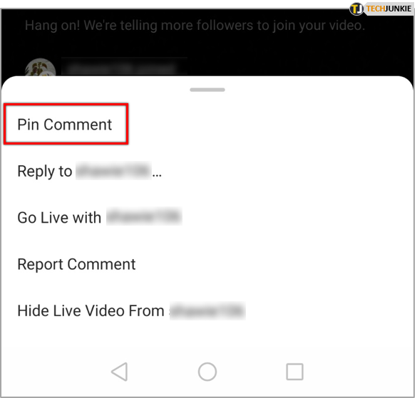 - If you find a comment that you wish to display, tap on that comment and choose Pin Comment.