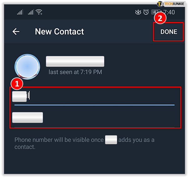 - Change their name as you’d like it to appear in your contacts list or leave it as it is and tap on Done.
