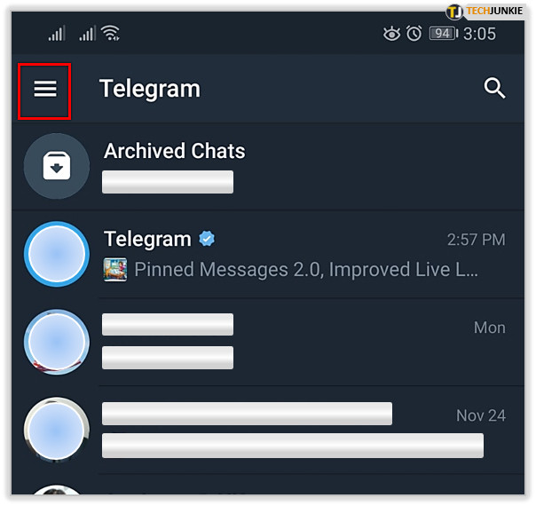 - Open Telegram and tap the hamburger menu in the top left corner.