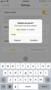 When you type delete in the small pop-up window and hit Confirm, you are taken back to the login screen. From there on you can either create a new account or uninstall the app altogether, just like you would uninstall any other app on your phone.