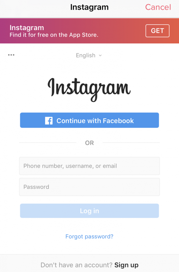 - Use your Instagram username and password to login. Alternatively, you can use your Facebook account to connect.