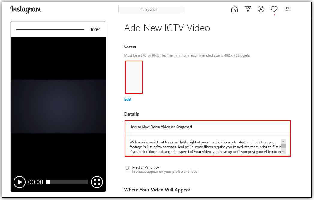 If you want to post a long video on IGTV from your computer, here’s how to do so: