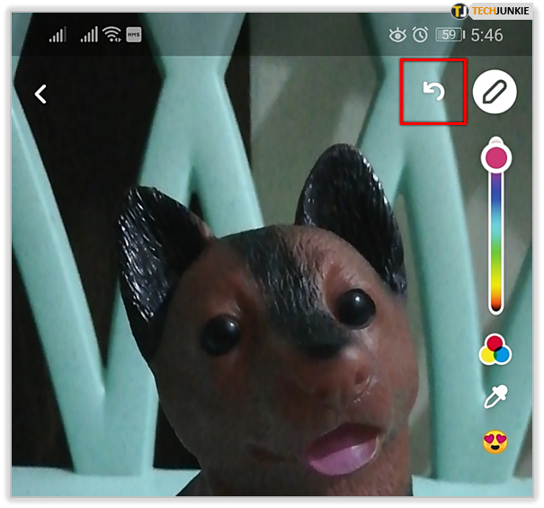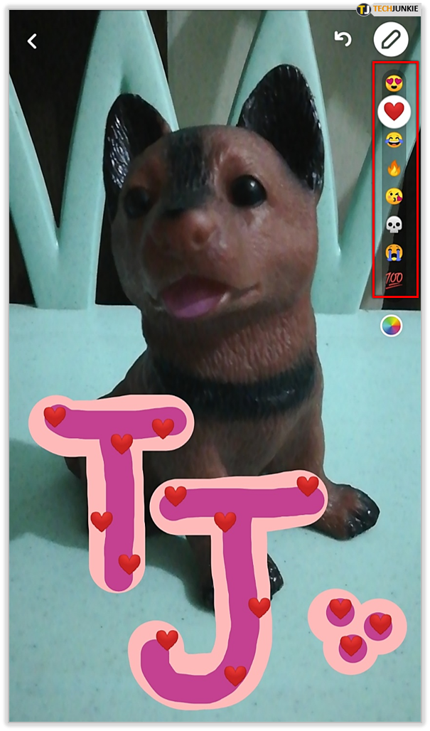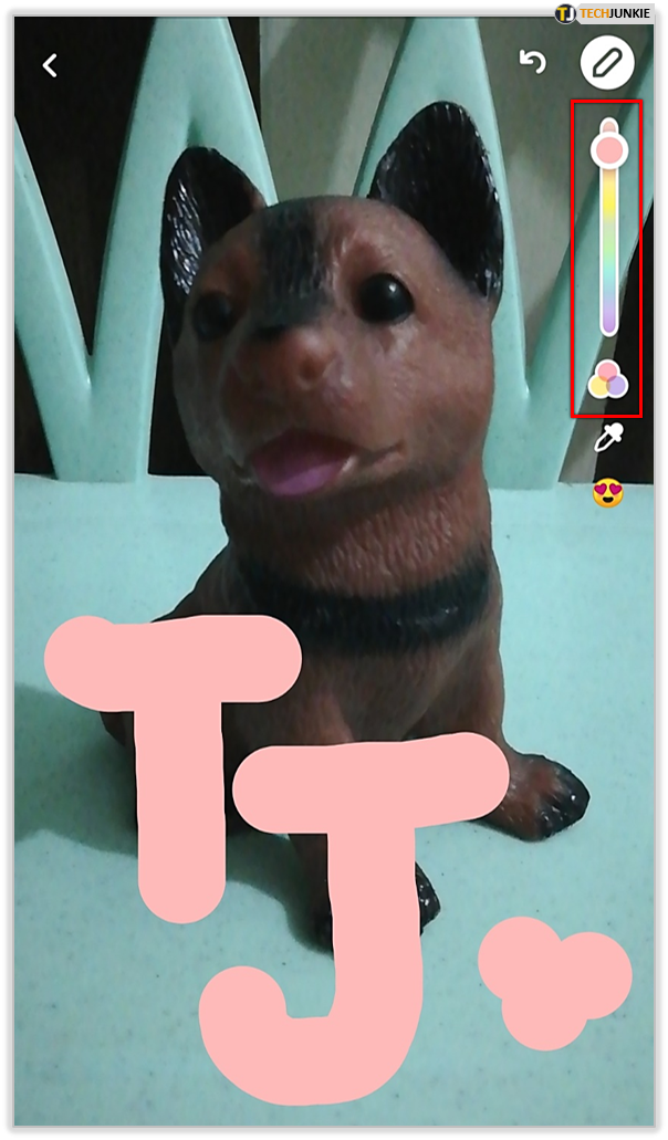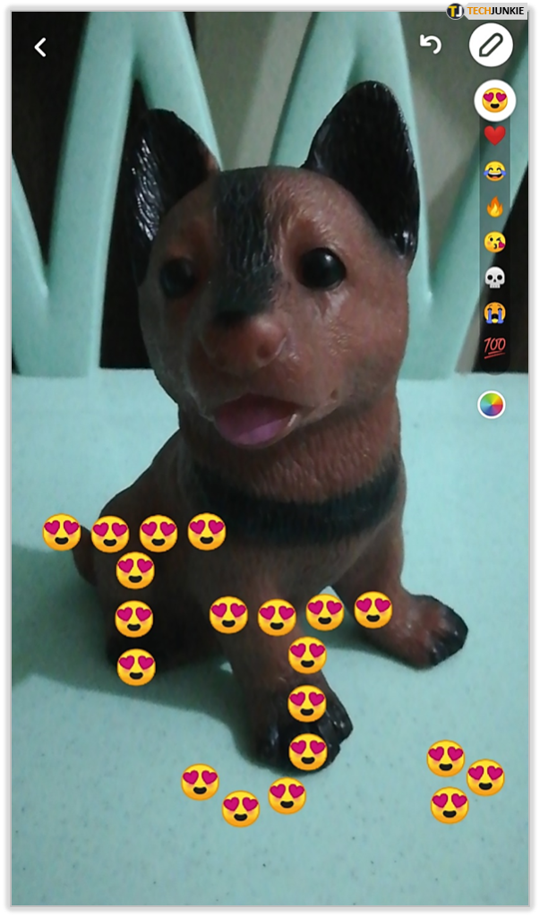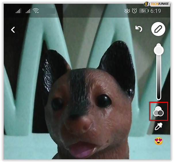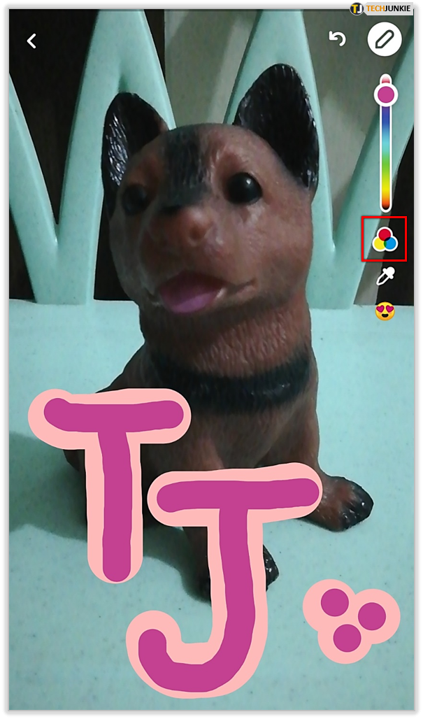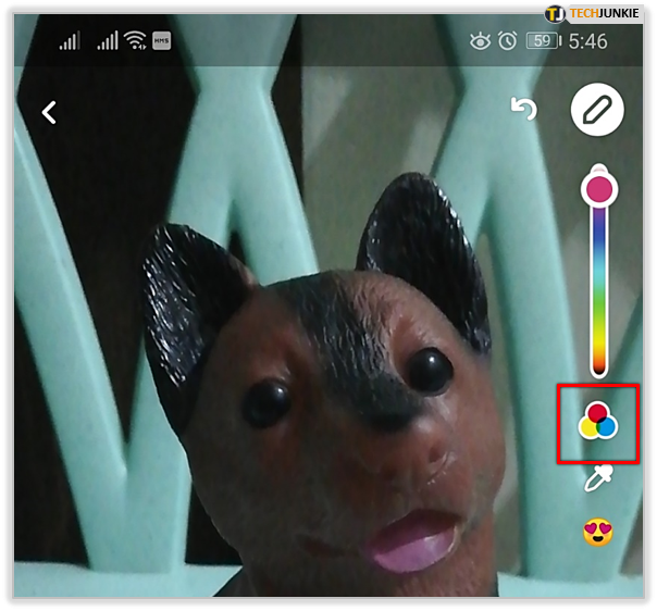 To start drawing, tap the pencil icon in the upper right corner of the screen. You’ll see the color, saturation, and emoticon icons, but more on them later.