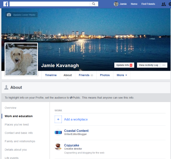 - Hover your mouse in the box that contains your job and school and select the pencil icon that appears.