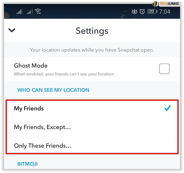 Your options here are Ghost Mode, My Friends which requires you to be following each other rather than one just following, My Friends Except, which should be self-explanatory, and Only These Friends.