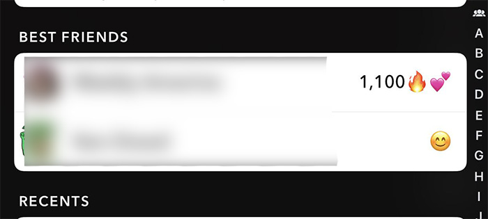 If you’re looking for your list of Best Friends, you can find it once you’re sending a snap at the very top of your full contacts list. You may also notice that some of your best friends have small emojis next to each name, which indicate a special reward they currently hold. There’s no shortage of emojis you’ll find in this list, and you can even customize them in your settings menu. If you’re looking for some of them, you’ll see emojis like these.