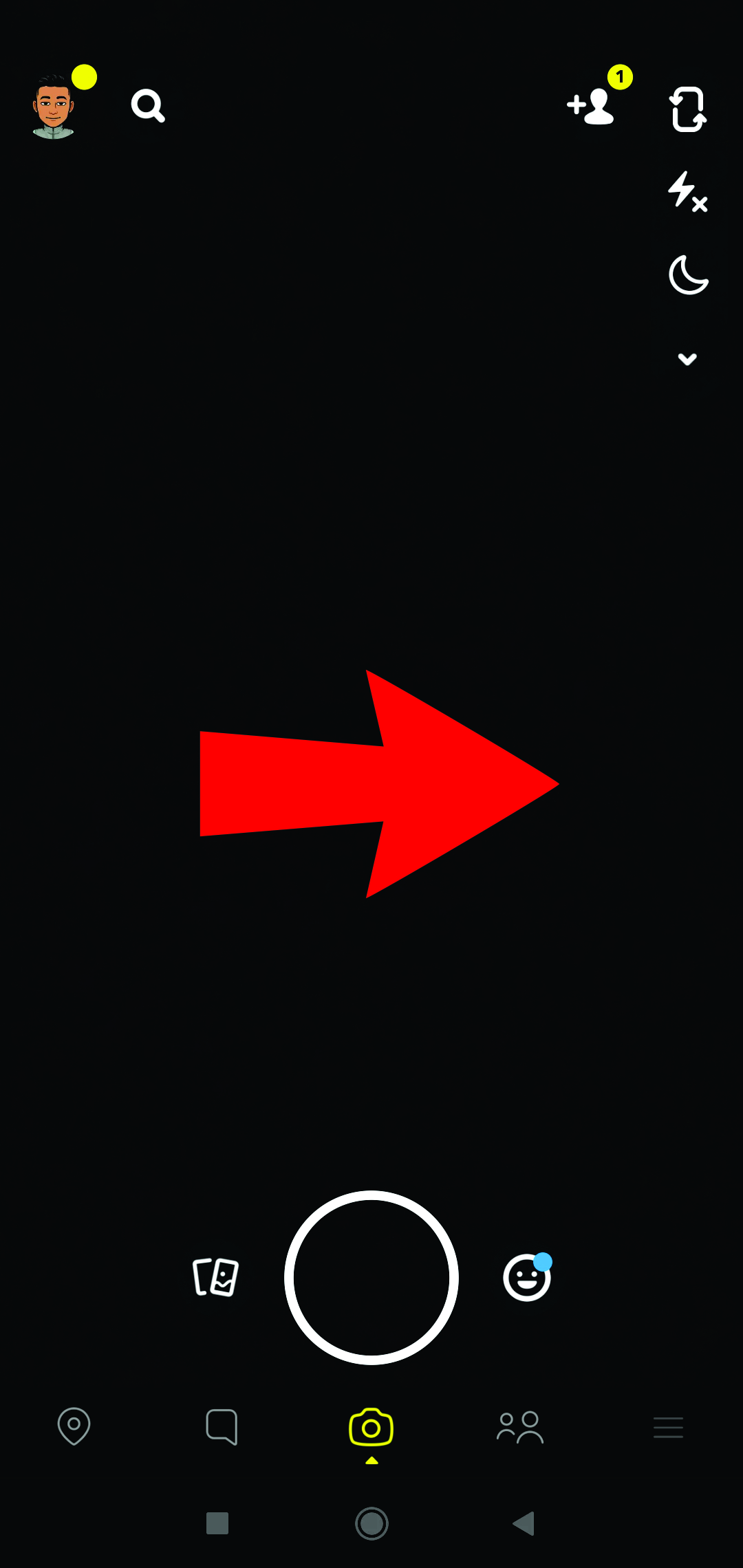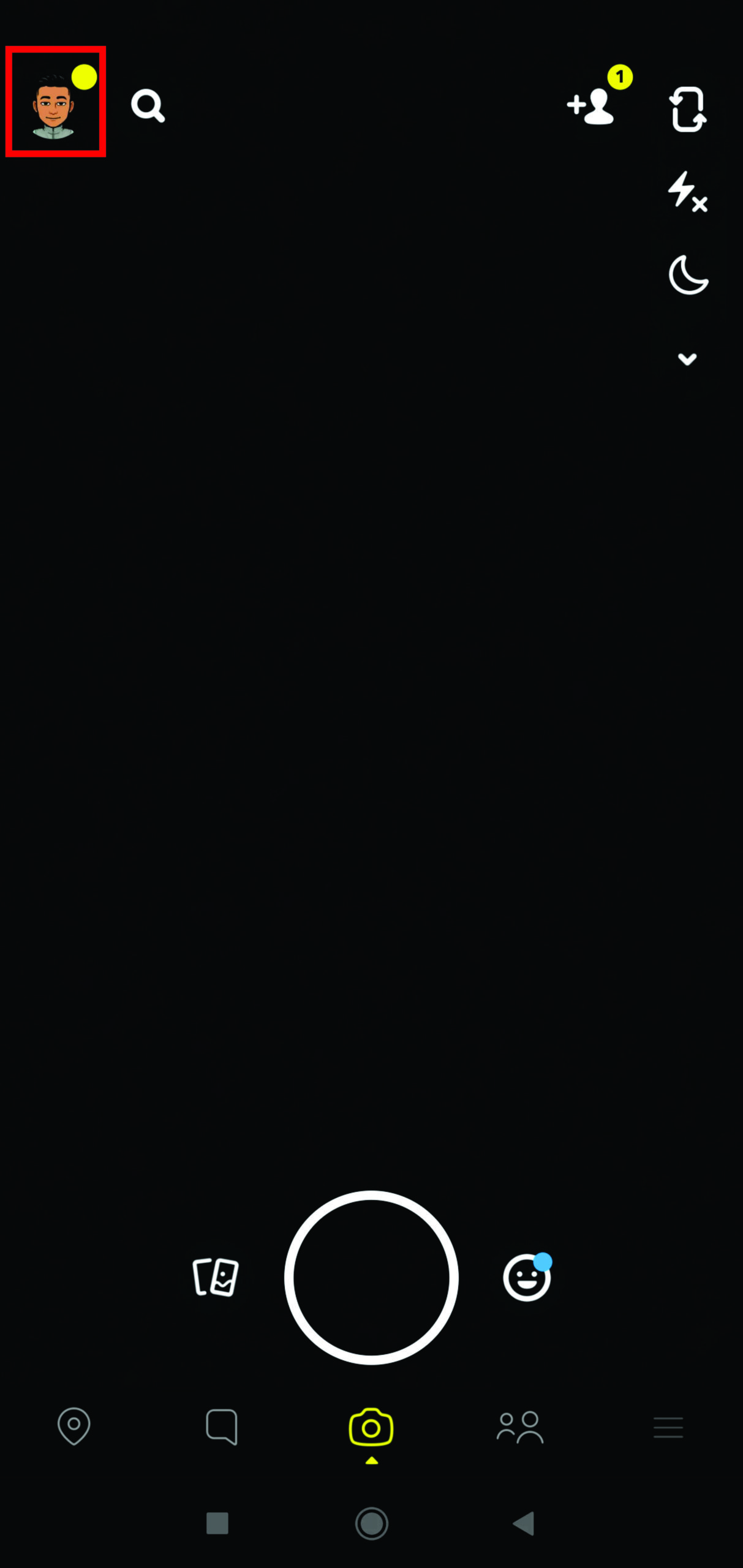 - Click on your profile icon or your Bitmoji at the top of the screen.