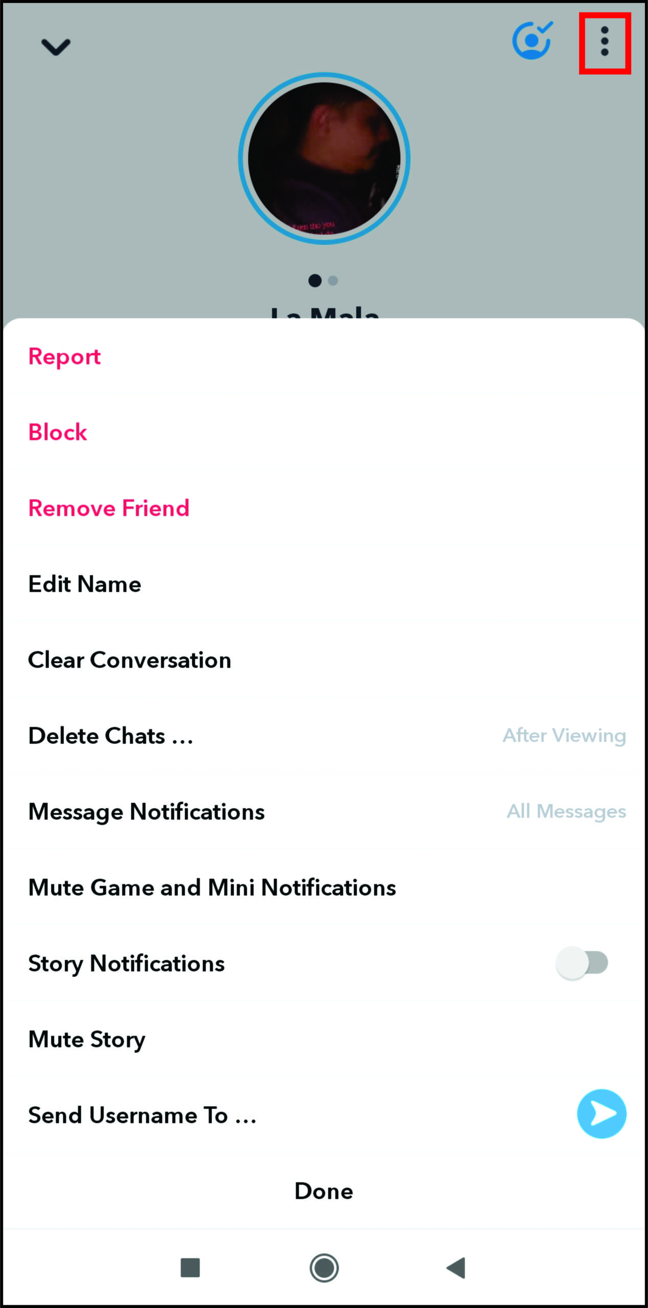 - Click on their profile photo and then click on the three-dot icon.