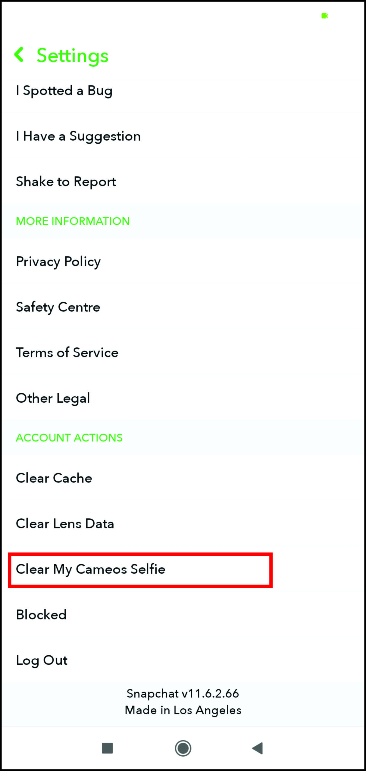 - Find “Account Actions” and click on “Clear my Cameos Selfie.” Lastly, click on “Clear.” Now, you can take a brand-new Cameo and start sending it.
