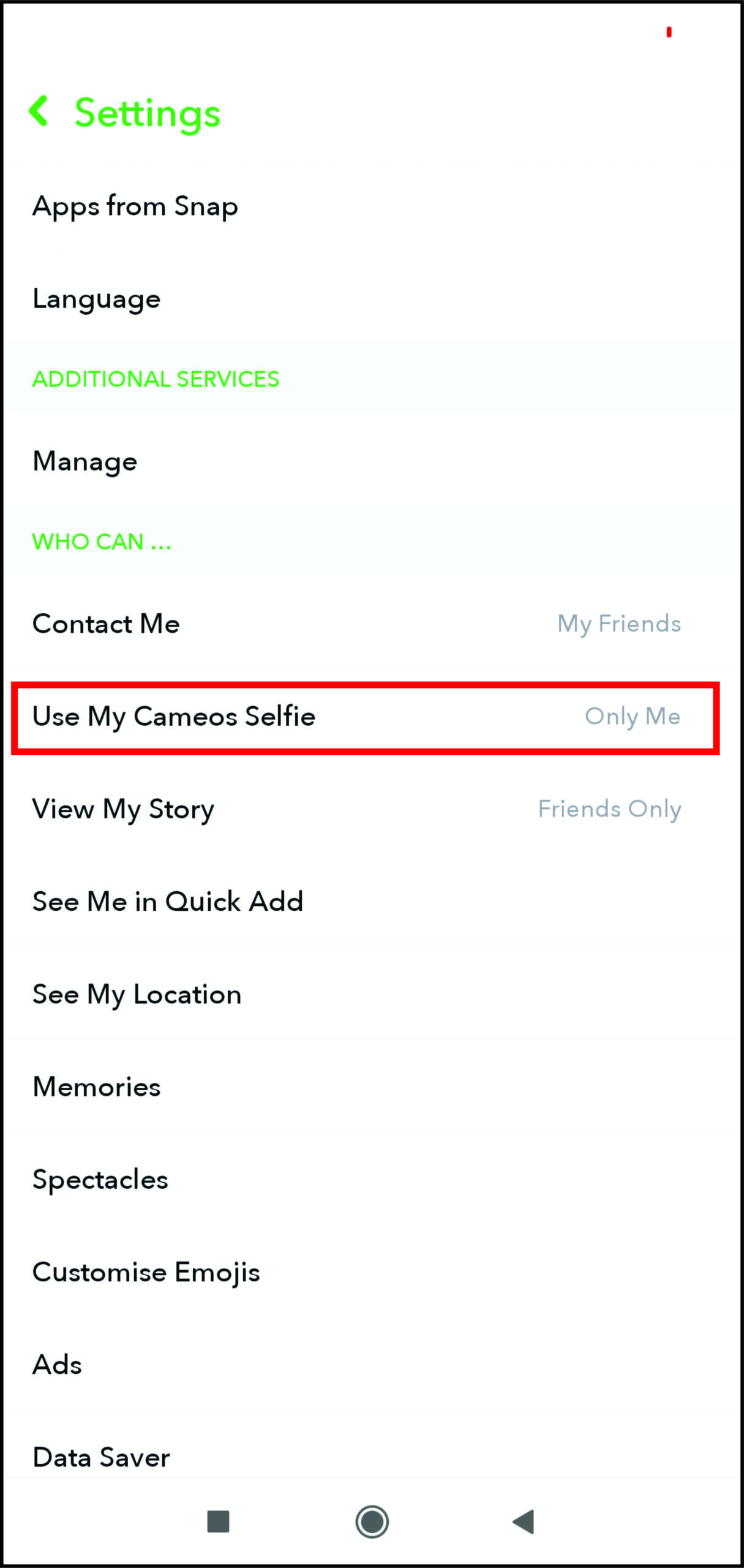 - Find the “Who Can” and tap on “Use My Cameo Selfie.”