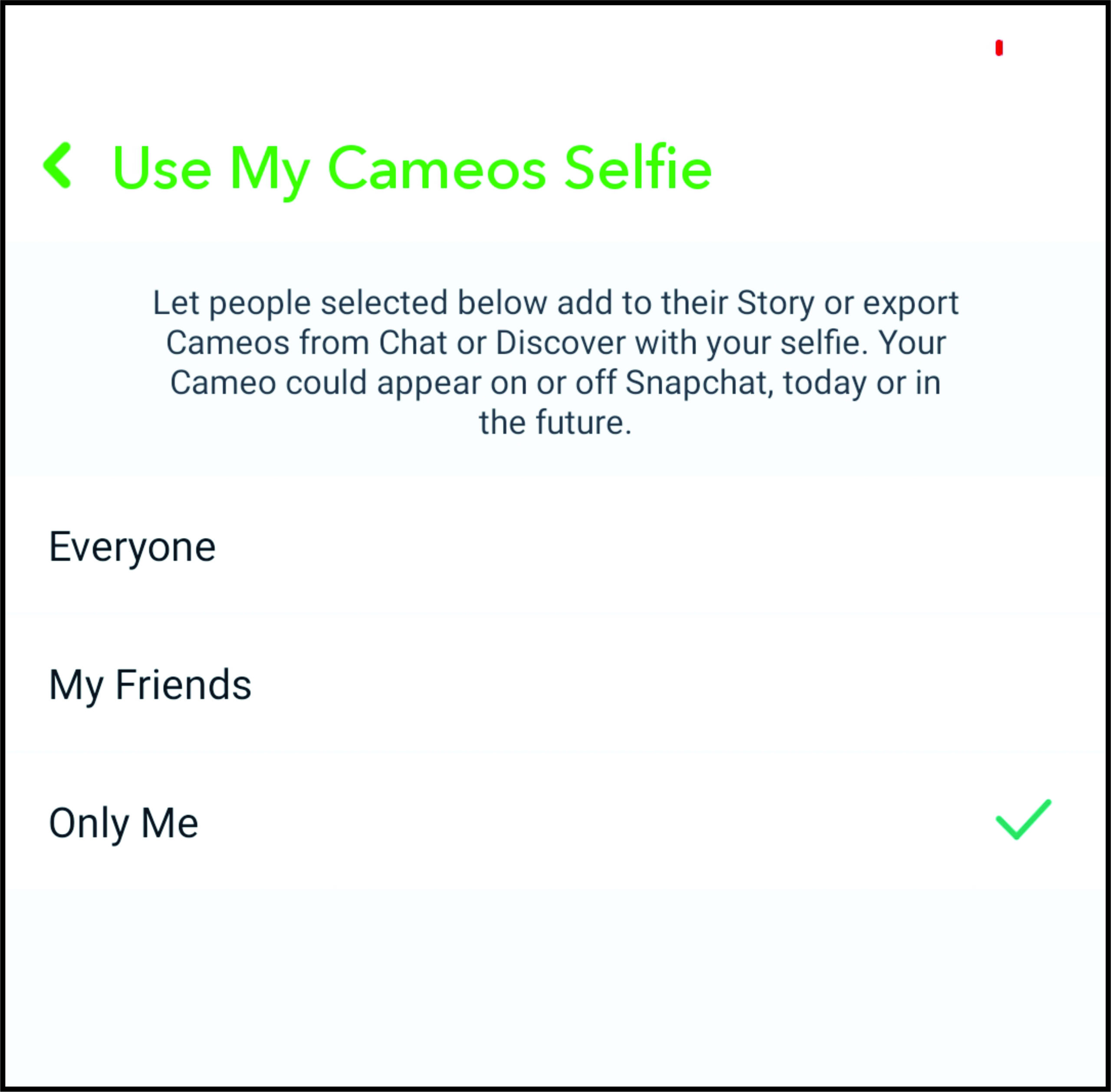 - You can decide whether “Everyone,” “My Friends,” or “Only Me” has access to your Cameos.