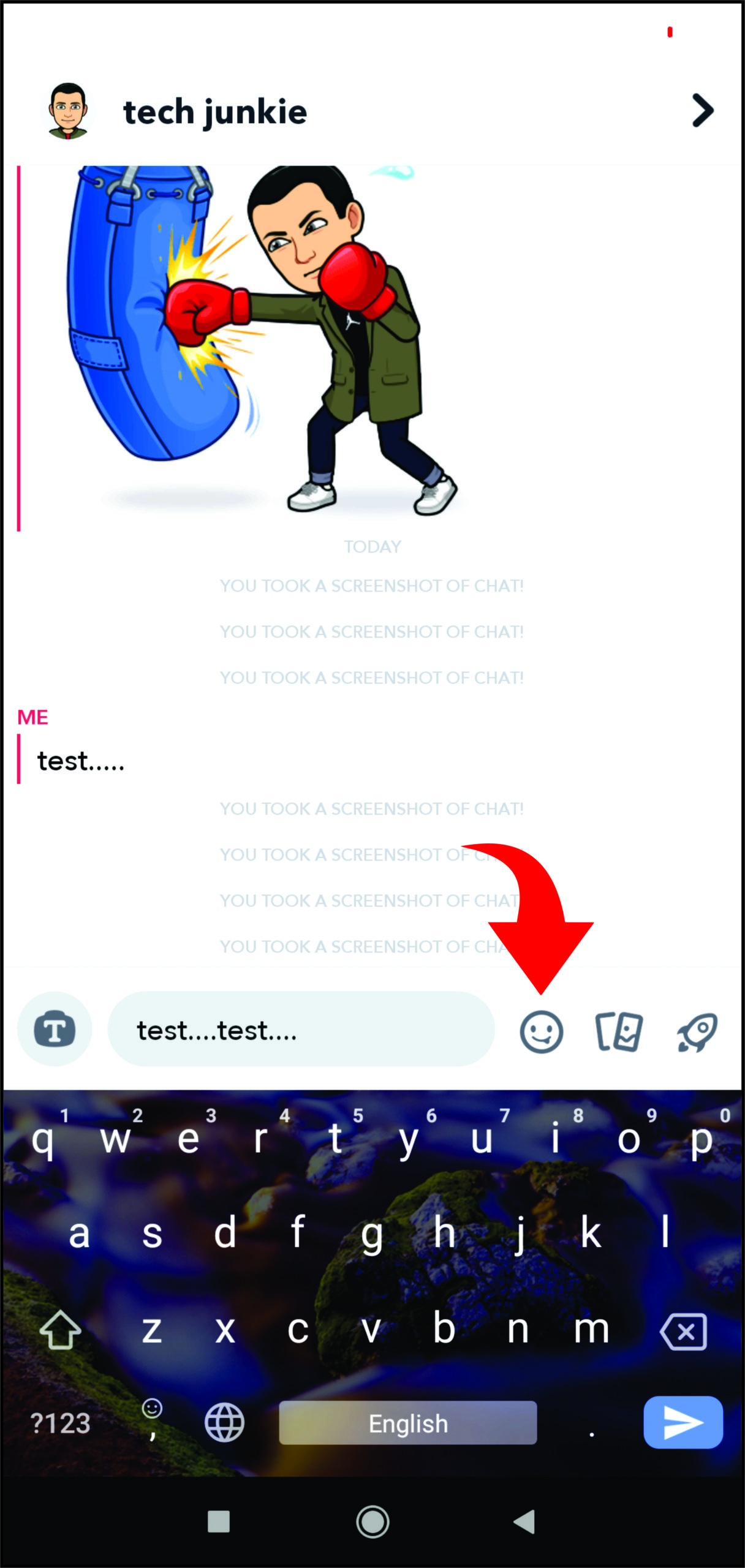 - On the right side of the Text box, you’ll see an emoji or smiley icon.