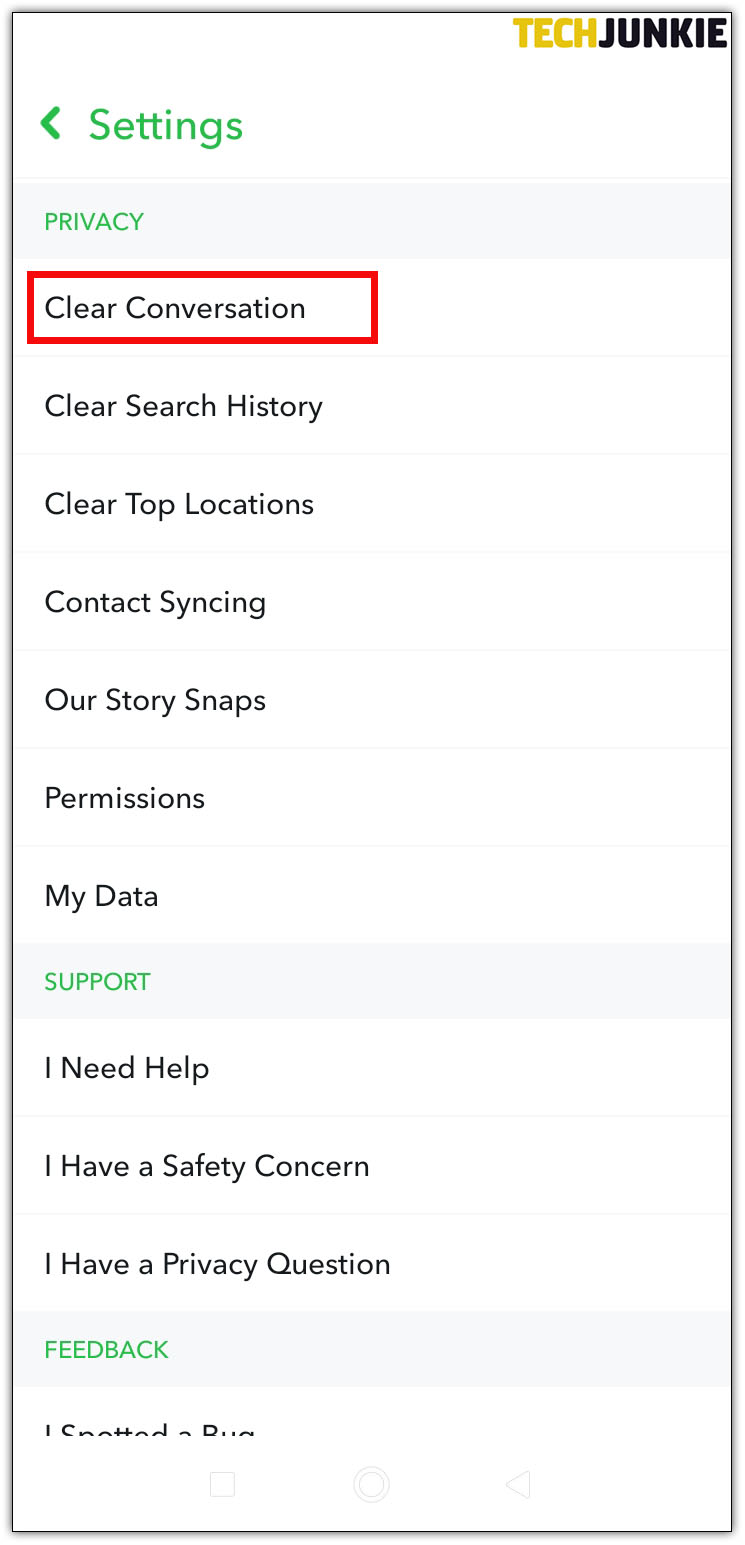• Scroll down to the bottom and select Clear Conversations