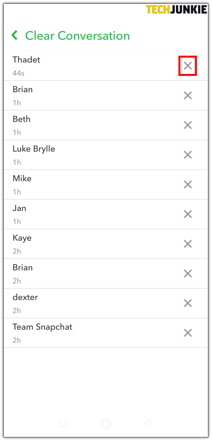 • Tap on the “X” next to each conversation you want to delete