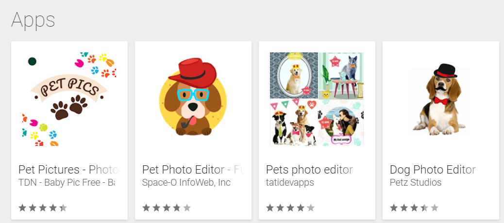 There are a few pet photo editor apps available on Google Play and the iTunes App Store. Some are free to download and install, but in-app purchases may be necessary to get access to all the filters.