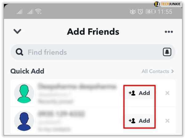 Snapchat will scan your phone’s contact list for friends to add. Make sure to give it permission to do so the first time you launch the Snapchat app on your device. Other than that, you can find your friends using their username, or their QR code.