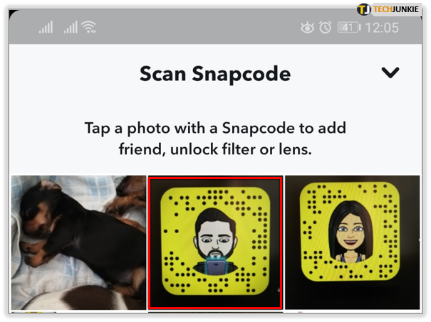 - Finally, you can also use the QR code method. Tap the Snapchat icon in the top-right corner of your screen, and scan your friend’s QR code. It’s best to save the image with their QR code on your phone if you want to use this method. Then you just need to select the image and Snapchat will scan it for you.