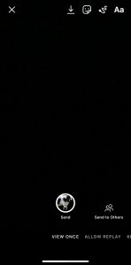 When in ‘Effects,’ you will see ‘One View,’ ‘Allow Replay,’ or ‘Keep in Chat.’ ‘One View’ allows the recipient to view the content only once. ‘Allow Replay’ allows a single replay of a video, and ‘Keep in Chat’ allows a preview image to remain in the chat thread. The image or video will still disappear once the relevant criteria have been met.