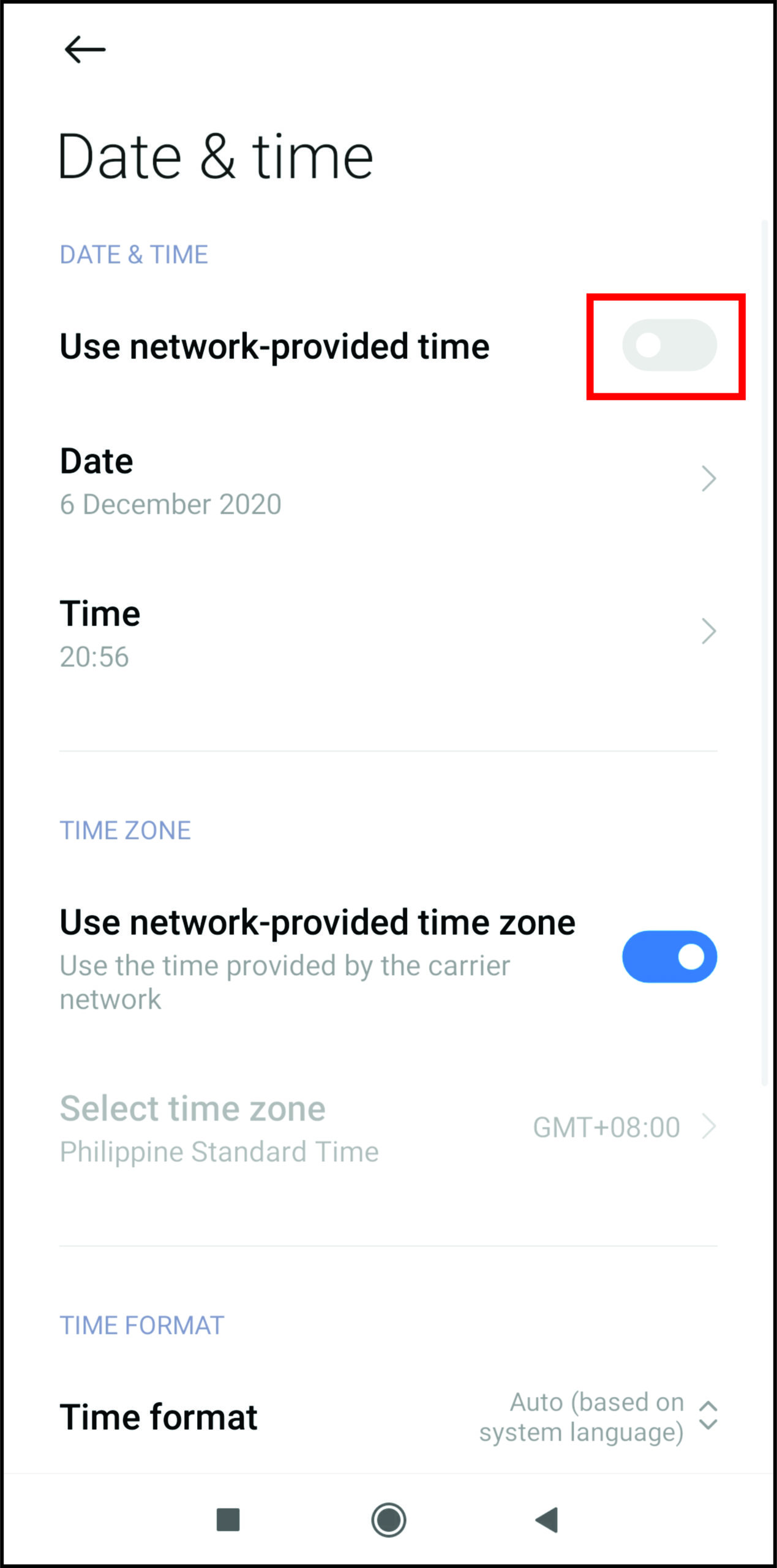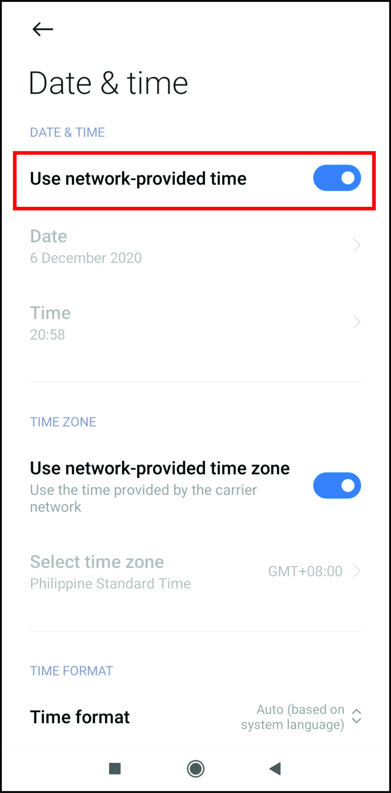 - Find the Automatic Date & Time setting and disable it.