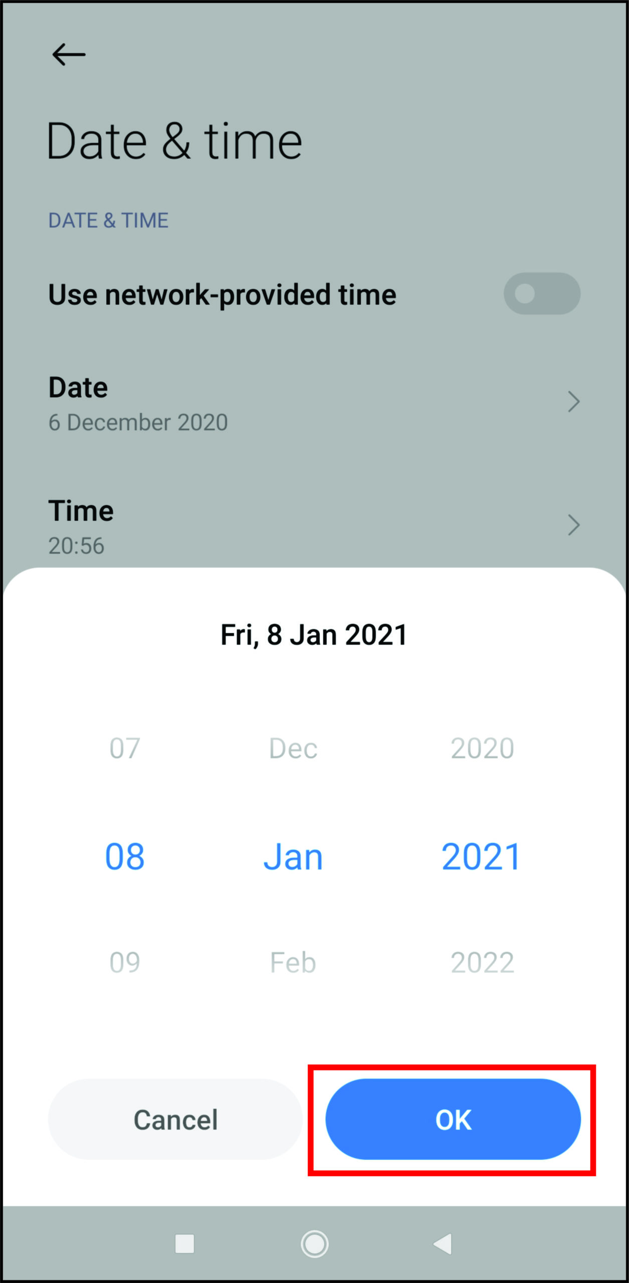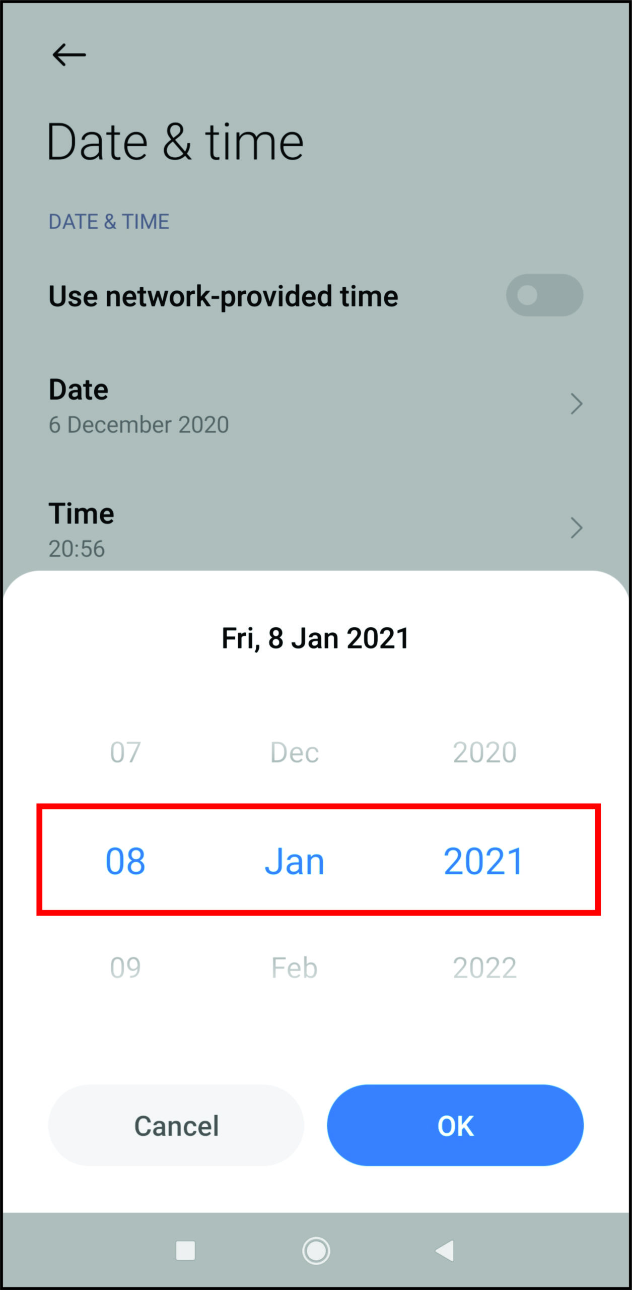- Now, go back and revert the date change to not mess with your phone further. Having an incorrect date setting can cause other apps to work improperly.