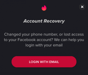 Another common issue with apps, including Tinder, is the inability to log into your account. When you attempt to log into Tinder you will see an option for “Trouble Logging In?” Tap on that option and follow the prompts to recover your account. Once you get back in, be sure to add a recovery phone number just in case you ever get locked out again.