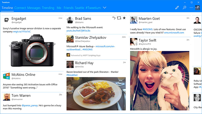 In our eyes, the best Windows-exclusive Twitter app you can grab this year is still Tweetium, a third-party application available on the Windows Store for just $2.99. Like Tweetbot, there are some standard limitations to using a third-party Twitter app on Windows instead of the website or official client, but overall, we’re really big fans of what Tweetium brings to the table in terms of both design and features, and we think you will be too. Let’s start off with some notes on design. Like Tweetbot, Tweetium is designed entirely around the general design ideas of Windows 10. There’s a lot of white space here, with big, bold blue headers and faint lines separating content from itself. The app features a windowed look that opens new content, threads, DMs, and mentions in their own areas inside the client, making it easy to manage your own Twitter notes without the functionality built into Twitter proper. Tweetium’s design also takes after the tile-based designs we’ve seen feature in the last two versions of Windows, making the entire app feel cohesive and compatible with the operating system you’re using. Animations are fluid, loading times are short, and multi-thread support is excellent.