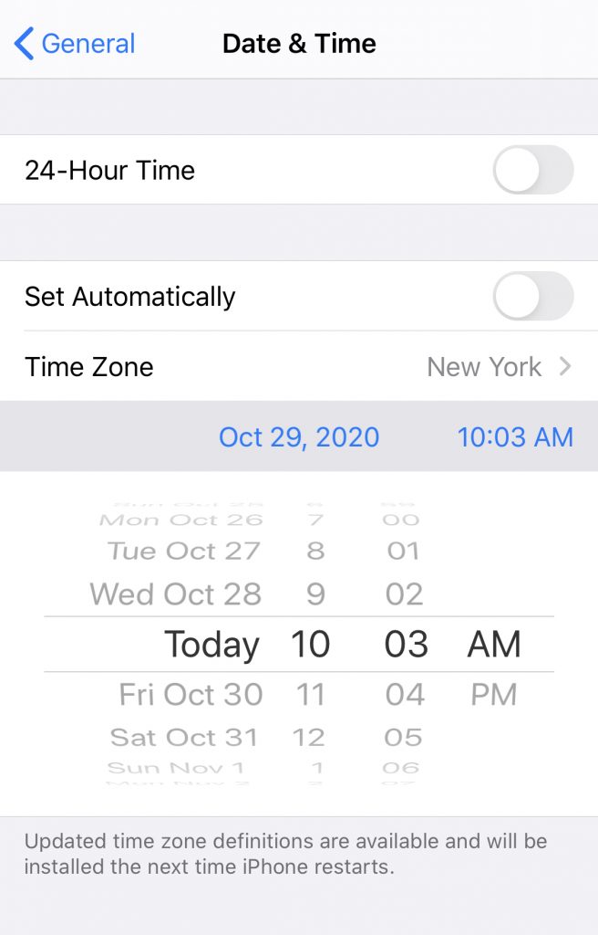 Go back to settings and correct the phone’s date.